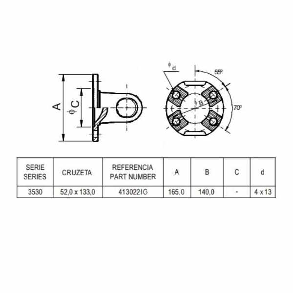 411 413022IG Garfo Flange DIN 165/4/13 (52x133)