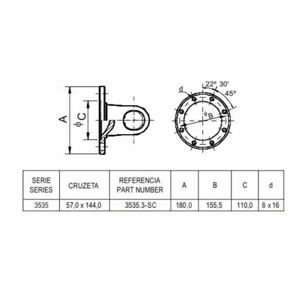 411 3535 3-SC Garfo Flange DIN 180x8x16 (57x144)