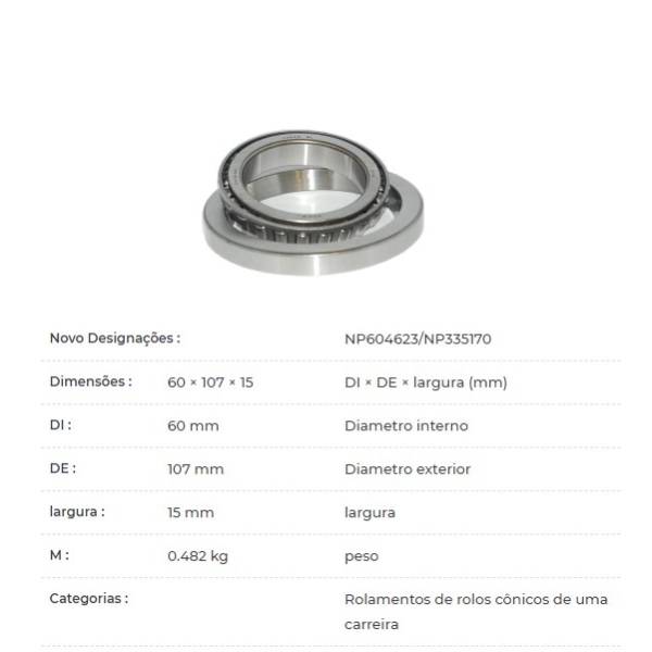 98-NP 604623/NP Cjto Rolamento 60x107x15