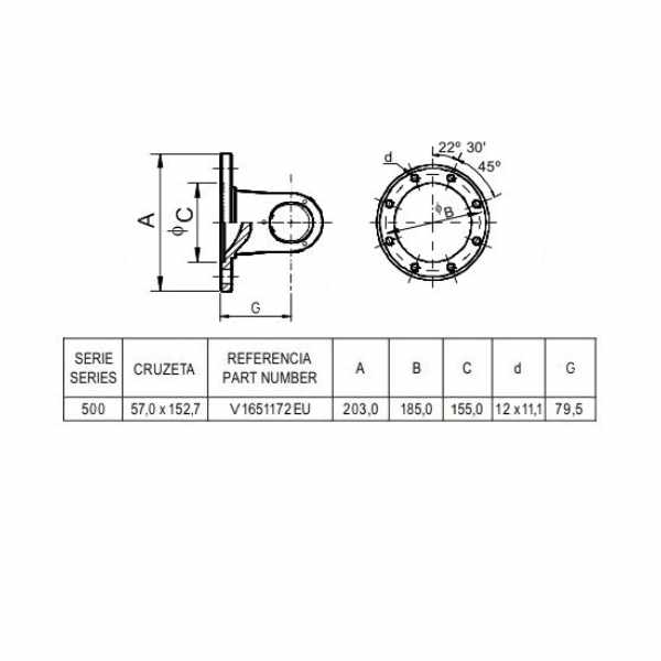 411 V 1651172EU Garfo Flange (57x152.7x12)